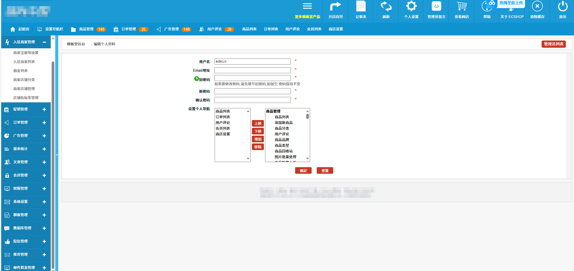 5.先登录网站后台修改一下网站名称和关键词这些东西再去浏览测试前台,否则程序一直都会显示错误的信息的!